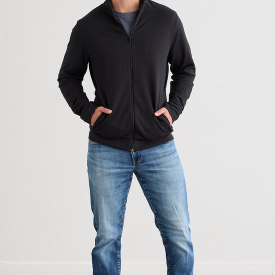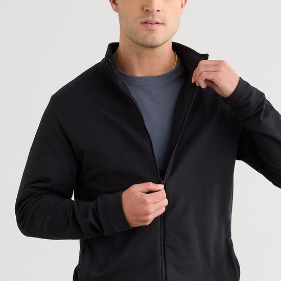 Comfort you can feel good about. This mid-weight jacket is crafted from 97% organic cotton, 3% spandex French terry fabric for a soft, breathable layer that keeps up with your day. Whether you're heading out or staying in, this eco-conscious essential delivers dependable comfort and timeless style.