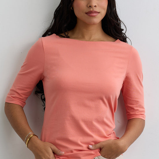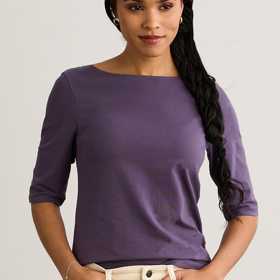 Women's Organic Cotton Elbow Sleeve Boat Neck Top