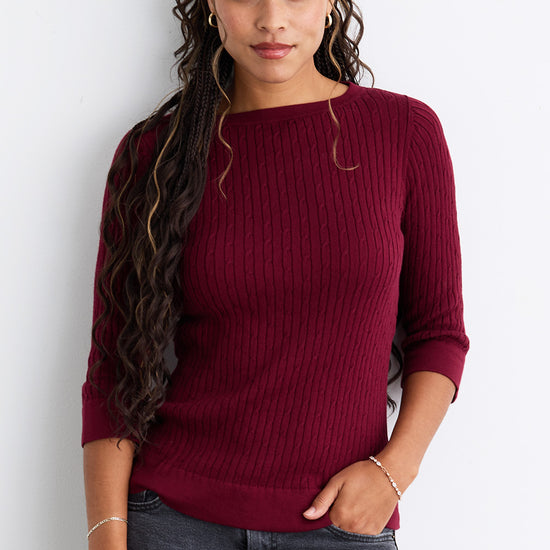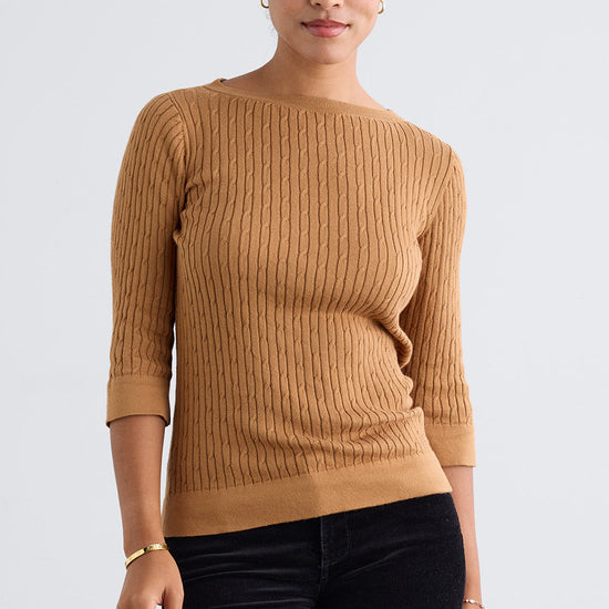 Women's Organic Cotton Cable Knit Boat Neck Sweater