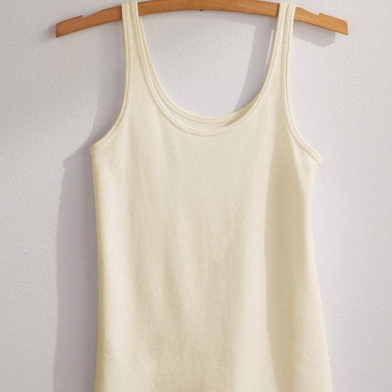 Every forever-in-fashion wardrobe starts with foundation pieces like this. If you're looking to upgrade to a versatile, sustainable tank top made of 100% cotton, look no further than our Organic Cotton Tank Top. Our unique all-cotton fabric is loftier and softer than your average tank top jersey material, and stretches without the use of spandex. Available in a variety of colors, this cotton tank top is perfect for layering or wearing on its own.