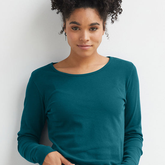Women's Luxe 100% Organic Cotton Jewel Neck Long Sleeve Tee