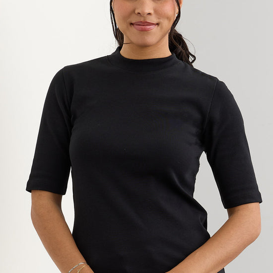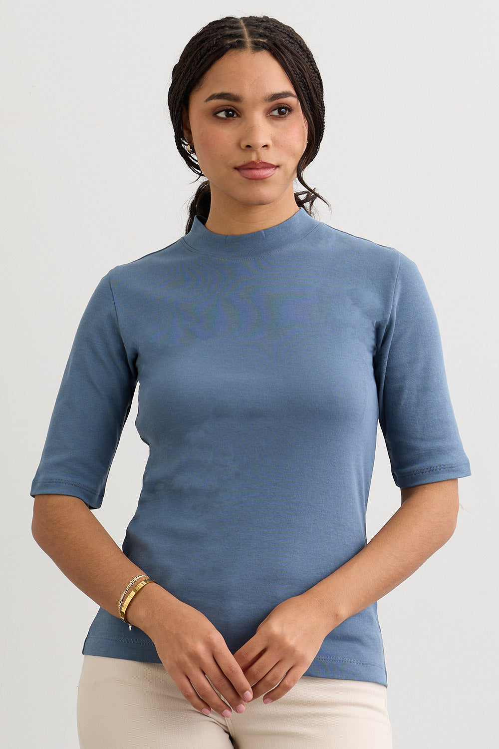 Women's Luxe 100% Organic Cotton Half Sleeve Mock Neck Tee