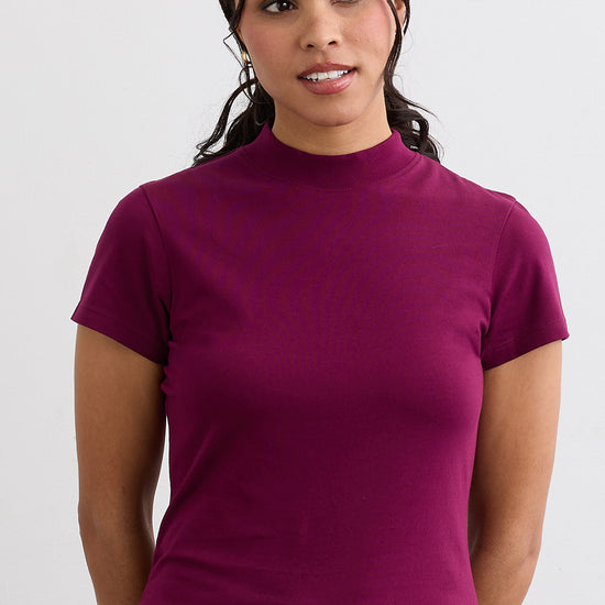 Women's Slim Organic Cotton Short Sleeve Mock Neck Top