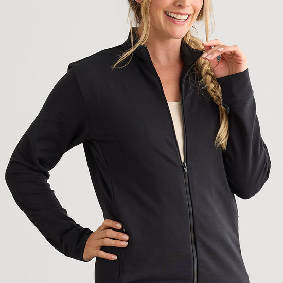 This perfectly mid-weight zip jacket comes to you in the soft cozy goodness of organic Pima cotton French terry. It's perfect for layering over your workout wear or pairing with denim for off-duty days.