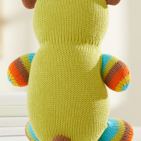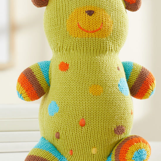 Huggy the Bear is known to the rest of the Joobles gang as everyone's BFF, always encouraging everyone to be their best. Huggy also loves cooking and has been known to whip up a campfire feast for the entire Joobles crew. This irresistible organic cotton stuffed animal is destined to be a lovable, lasting companion. So wonderfully squishy and soft, it's hard to let go! And full of wholesome goodness from farm to toy box.