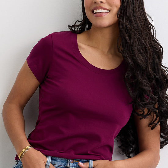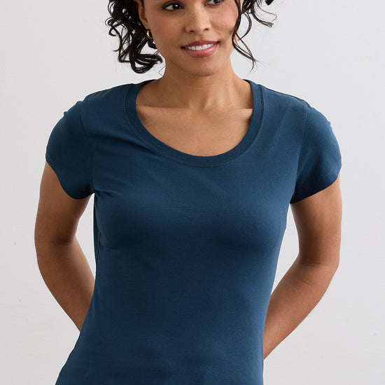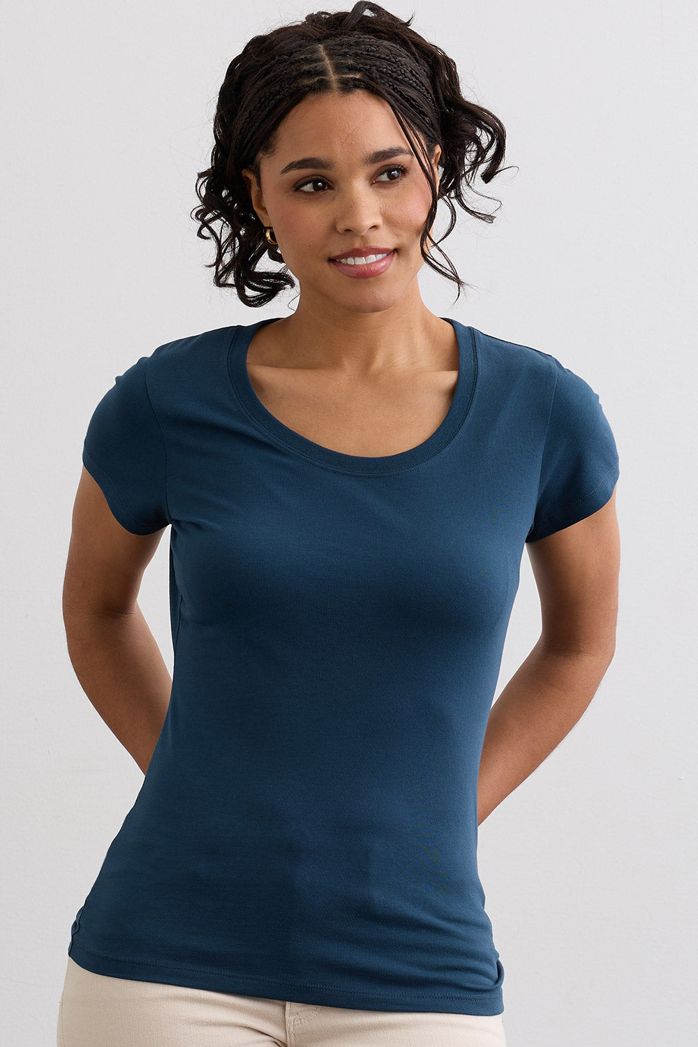 Everything you love about our all-time best selling Short Sleeve Scoop Neck T-shirt, but with a slimmer shape through the body. It's made with the same magically wonderful organic Peruvian Pima cotton with just a hint of stretch.