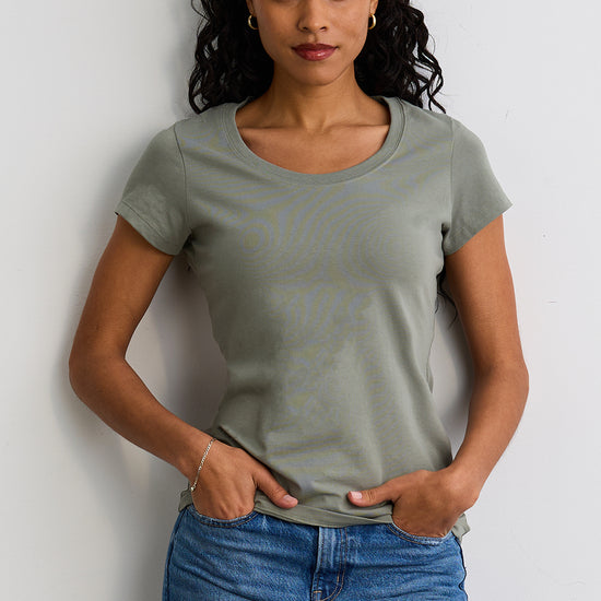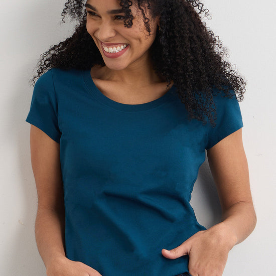Everything you love about our all-time best selling Short Sleeve Scoop Neck T-shirt, but with a slimmer shape through the body. It's made with the same magically wonderful organic Peruvian Pima cotton with just a hint of stretch.